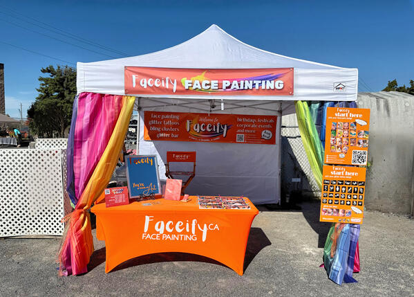 $100/hour for speed face painting (minimum 3-hour booking, canopy setup included)